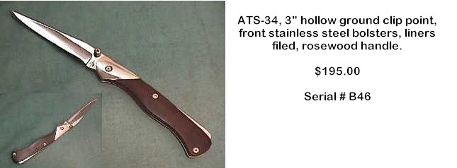 I have enjoyed making quality cutlery by hand since 1981. I made my first knife in a Navy school for Heat Treating and Metallurgy. Little did I know back then what was in store for me. I could say the same thing about when I became a Christian in 1972 or a dad in 1987. Today I am a fortunate man. God has allowed me to combine the loves of my life together in one big package. I call it Center Cross Metal Works. I hope you like what you see when you look at my crosses. I am a full-time Knifemaker and father of 5 (full-time dad too!) and I simply love what I do. I wish more people enjoyed their profession. Making knives challenges my hands and my nerves. I love teaching people and sharing my trade. Today I build mostly folding knives with a few batches of fixed blades now and then. My folders start around $95.00 and I sell most in the $150.00 to $250.00 range. My fixed blades with sheath packages start around $75.00 and I sell most in the $125.00 to $200.00 range. My automatics also come in a variety of styles and price ranges starting at $175.00. Most are sold in the $300.00 to $450.00 range. Swords, axes, razors, etc. are priced per order. Kitchen sets are also available upon request. Estimates are free and confidential. Custom orders are still being taken, however, my schedule is getting full. To avoid any delay send sketches and requests as soon as possible. My list continues to grow. A 25% deposit is required to start work on any order and a delivery time (estimated) will be given at the time the deposit is received. Upon completing the order I will notify you. When final payment is received I will promptly ship your order. Upon receiving the order you will have 30 days to contact me if for any reason you are not satisfied with the craftsmanship.