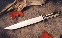 Like many others I began making knives because I couldn't find the type of knife I needed. That was many years ago and since then I have come to love the trade. Knifemaking allows me to combine my manual skills and my love of the arts to produce hard working knives that are most often described as "works of art" by my customers. 440C stainless steel is my blade material of choice for making knives of every description from outdoor knives, kitchen knives through to high-end art pieces, some with my own scrimshaw. Recently I have included Stellite 6K a product of Deloro Stellite Ltd. (Belleville, Ont. Canada) in my production line because it is virtually impervious to corrosion and has superior edge holding capability.
